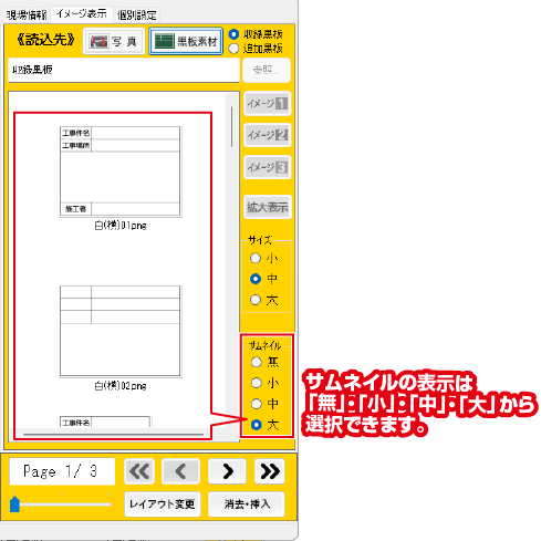 サムネイルの表示は「無」・「小」・「中」・「大」から選択できます。