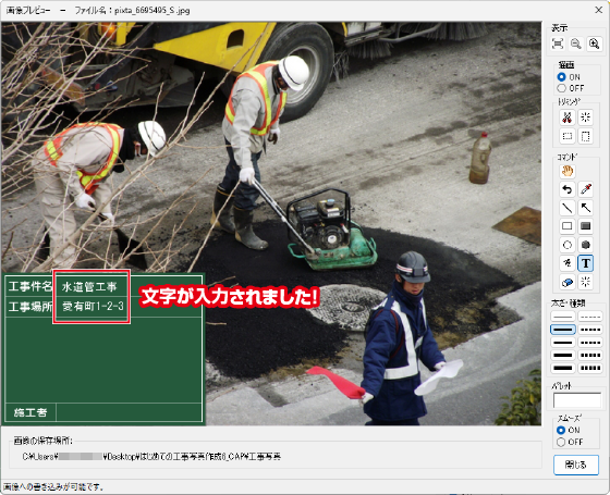 工事用の黒板を写真を整理した後にパソコン上で文字入力できます。