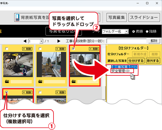 一覧にある写真をドラッグ&ドロップでフォルダーに移動するだけの簡単な操作で