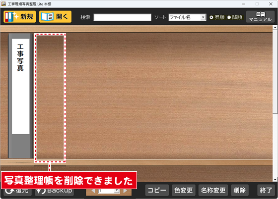 2. 写真整理帳を削除できました