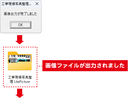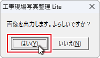 画像出力画面で出力ボタンをクリックすると確認画面が表示されますので、はいボタンをクリックします。