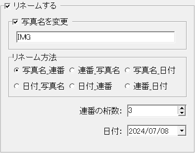 ④リネーム方法に日付を使用する場合は、日付を設定します。