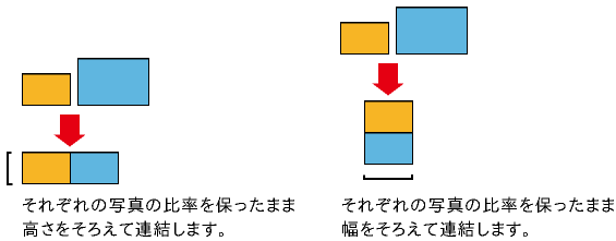 ⑤写真サイズが異なる場合は、それぞれの写真の高さ、または幅を揃えて連結します。