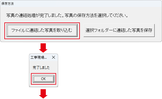 ファイルに連結した写真を取り込むボタンをクリックします。