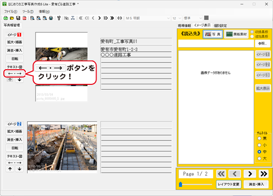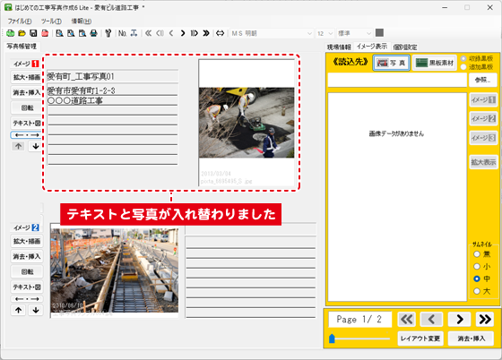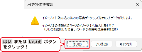 下図例のように3つの写真から2つの写真に変更する場合は、入力データの有無によって確認画面が表示されます。
