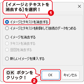 「イメージとテキストを消去する」を選択してOK ボタンをクリックします。