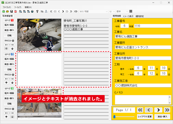 消去するイメージ枠の 消去・挿入 ボタンをクリックします。