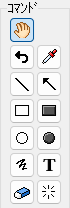 画像を拡大表示している時に、ドラッグして画像を移動できます。 行った操作の手順を1つ前の状態に戻します。 描画した図形などから、[パレット]の色を設定します。 ※写真からは、色を抽出できません。 ドラッグ&ドロップで直線を描画します。 ドラッグ&ドロップで矢印の直線を描画します。 ドラッグ&ドロップで四角の枠を描画します。 ドラッグ&ドロップで塗りつぶしの四角を描画します。 ドラッグ&ドロップで円(線のみ)を描画します。 ドラッグ&ドロップで塗りつぶしの円を描画します。 ドラッグ&ドロップで自由に線を描画します。 クリックした場所に文字列を挿入して描画します。 書き込んだ図形、文字、線などを部分的に消去します。 描画されている情報をすべて消去します。 |