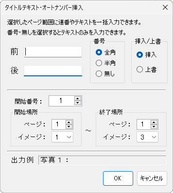 をクリックして、連番を自動挿入する開始イメージ・終了ページを設定します。