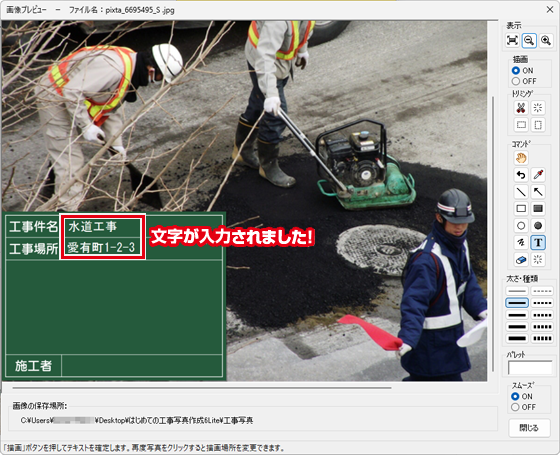 工事用の黒板を写真を整理した後にパソコン上で文字入力できます。