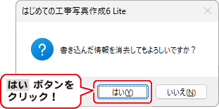 確認画面が表示されますので内容を確認して、[はい] ボタンをクリックします。