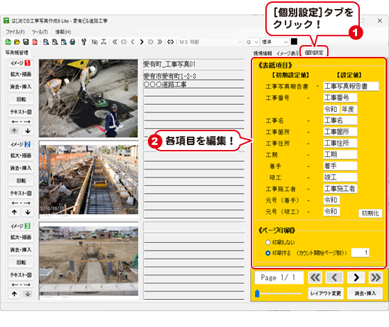 [個別設定]タブをクリックして、個別設定の編集欄を表示し、各項目名を編集・設定します。