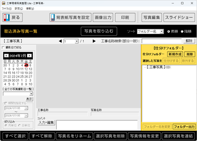 『工事現場写真整理Lite』は、工事写真や施工写真をデジカメやメモリーカード