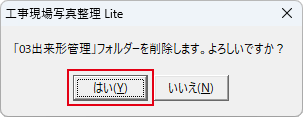 はいボタン→フォルダーに登録されている写真を写真整理帳からも削除する場合
