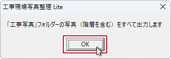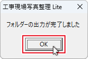 「フォルダーの出力が完了しました」と表示されましたら、OKボタンをクリックします。