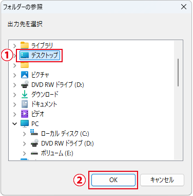 1. フォルダーを選択→「フォルダー出力」ボタンをクリックする