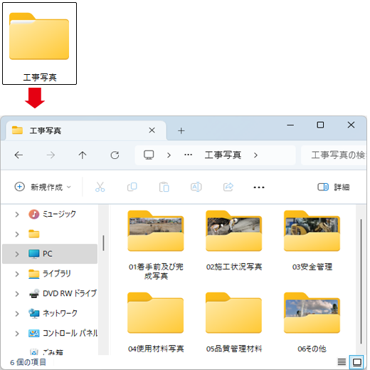 フォルダーで整理された状態の写真データを、他の用途で使用する場合などに便利です。