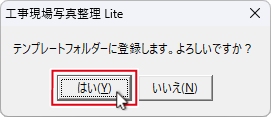 確認画面が表示されますので、登録する場合は、はいボタンをクリックし、