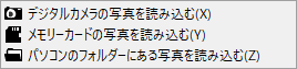 | ボタンをクリックして取り込む方法を選択し、取り込み先から画像を読込みます。 <取り込む方法> ![]() |