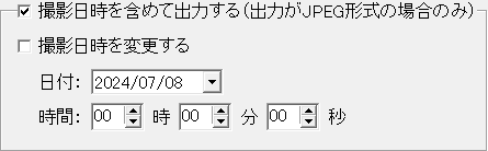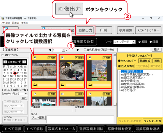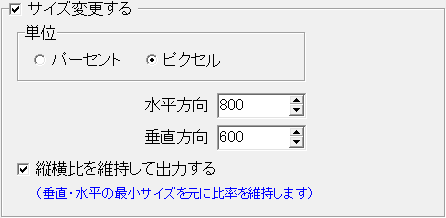 写真整理帳に取り込んでいる写真サイズ、画像形式を設定して出力することができます。