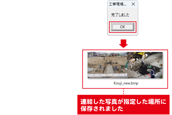 指定した保存場所に、連結した写真が保存されました。