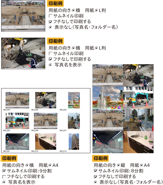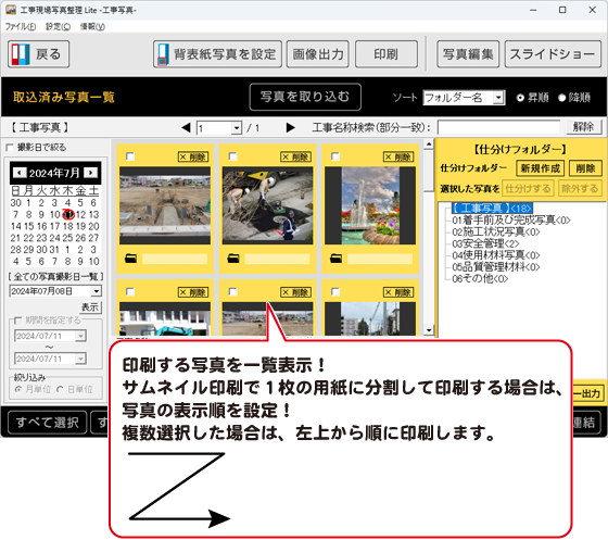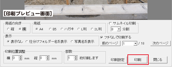 サムネイル印刷(1枚の用紙に複数の写真を並べて印刷)の場合は、写真一覧の左上を先頭に順に印刷されますので、予め印刷する順番にしてください。