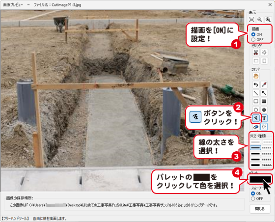 描画した直線だけでなく、画像に書き込んだ情報全てが消去されますのでご注意ください。