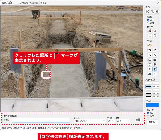 画面の下部には、[文字列の描画]欄が表示されます。