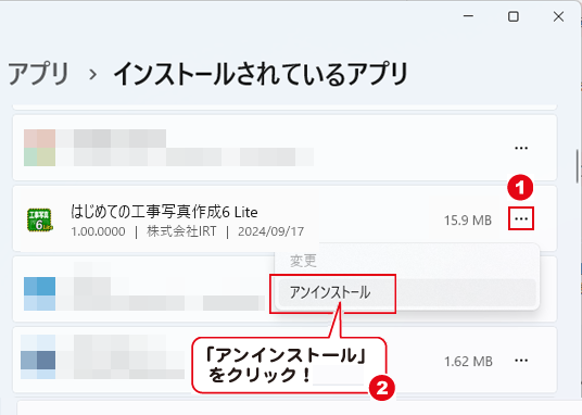 「はじめての工事写真作成6 Lite」を選択し、「・・・」をクリックします。