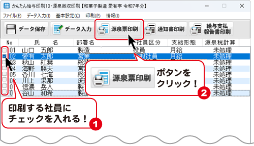 ボタンをクリックして、源泉徴収票の印刷画面を表示します。