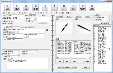 膨大なお客様(お得意様)をかんたん管理。ハガキ、ラベルへの宛名印刷も可能です!