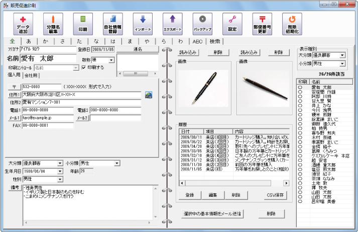 お客様(お得意様)情報の管理を手助けし、ハガキ(DM)印刷まで行う!