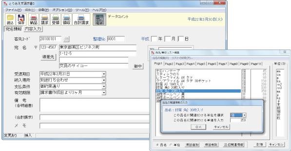 読み込み、納品書・請求書などの帳票に印刷することができます。