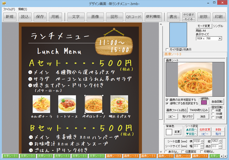 写真を使ったPOP・チラシ・メニューを作成することができます。
