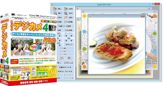 | 対応画像形式 | <はじめてのデジカメ4> 読込・保存画像形式:JPEG / BMP / TIFF <はじめての画像管理ビューワ> 読込画像形式:JPEG / BMP / PNG / GIF / TIFF |
