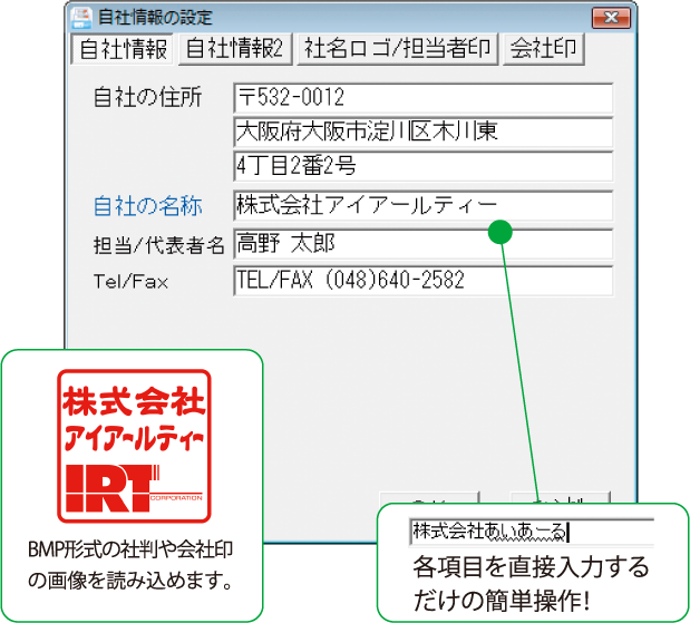 予め用意しておいたロゴやハンコなどのBMP画像を