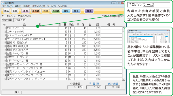 カンタンに注文書が作成できるソフトです。