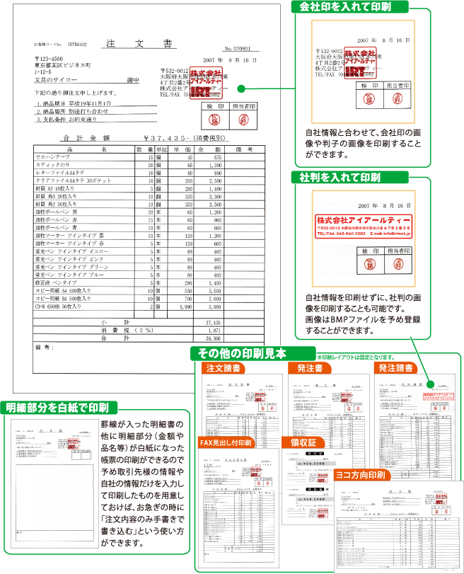 また、本ソフトでは「明細部分(金額や品名等)を白紙」にして印刷することもできますので、