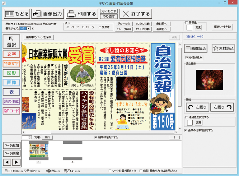 「誰でもパソコン編集局」はオリジナルの「新聞」「チラシ」「ポスター」などを