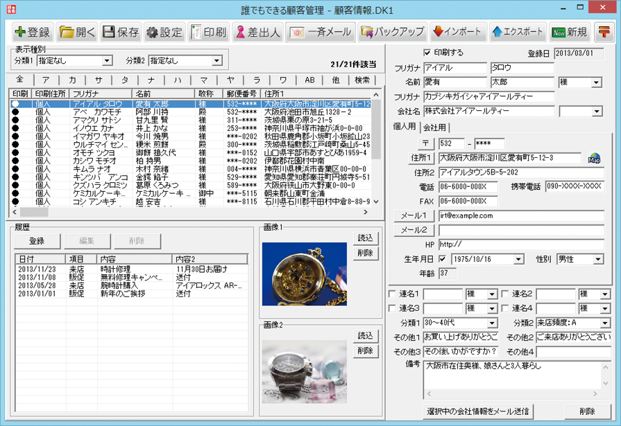 得意先(お客様)の情報を住所録として登録、登録した方に対して