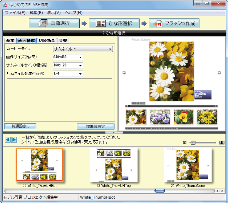収録されているひな形から画像をどのように表示させるかを選択します。