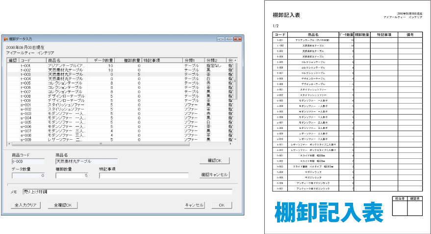 また、棚卸を記録する一覧リストの作成や、棚卸データの入力といった