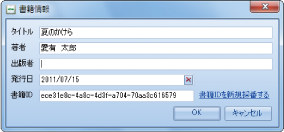 作成した電子書籍のタイトル、著者、出版社、発行日、書籍IDを設定できます。