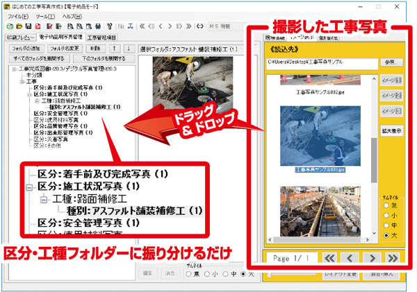 工事の工程、進捗をまとめた写真帳、電子納品データ作成ソフトです。