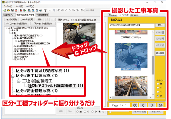 進捗をまとめた写真帳、電子納品データ作成ソフトです。