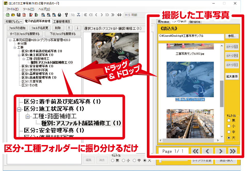 『はじめての工事写真作成5』はデジカメ等で撮影した工事の工程、