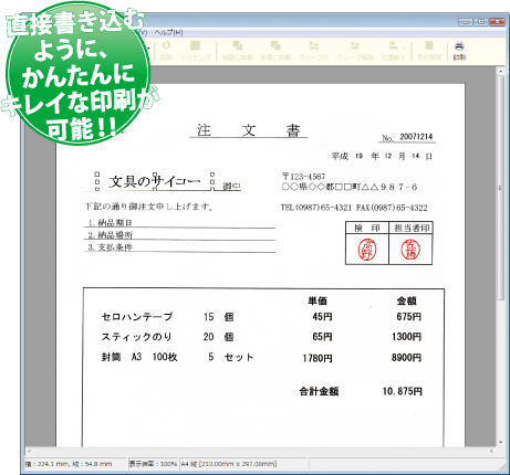 注文書・見積書・請求書・各種申請書類など予め記入する場所が決められている用紙にも、