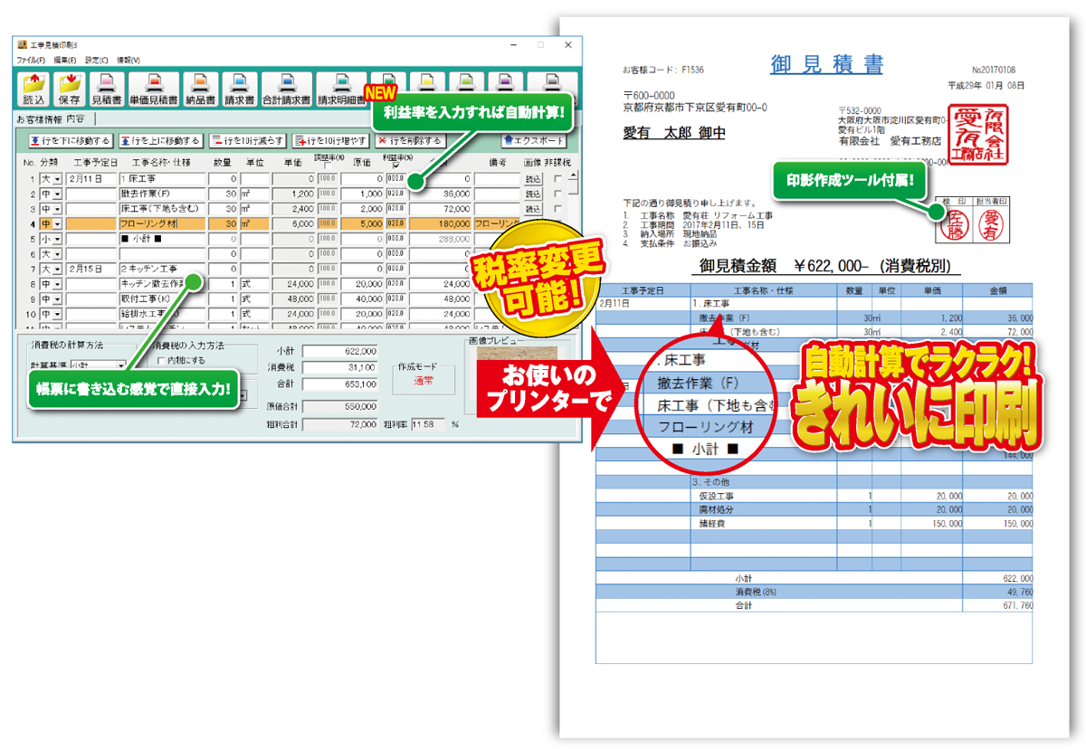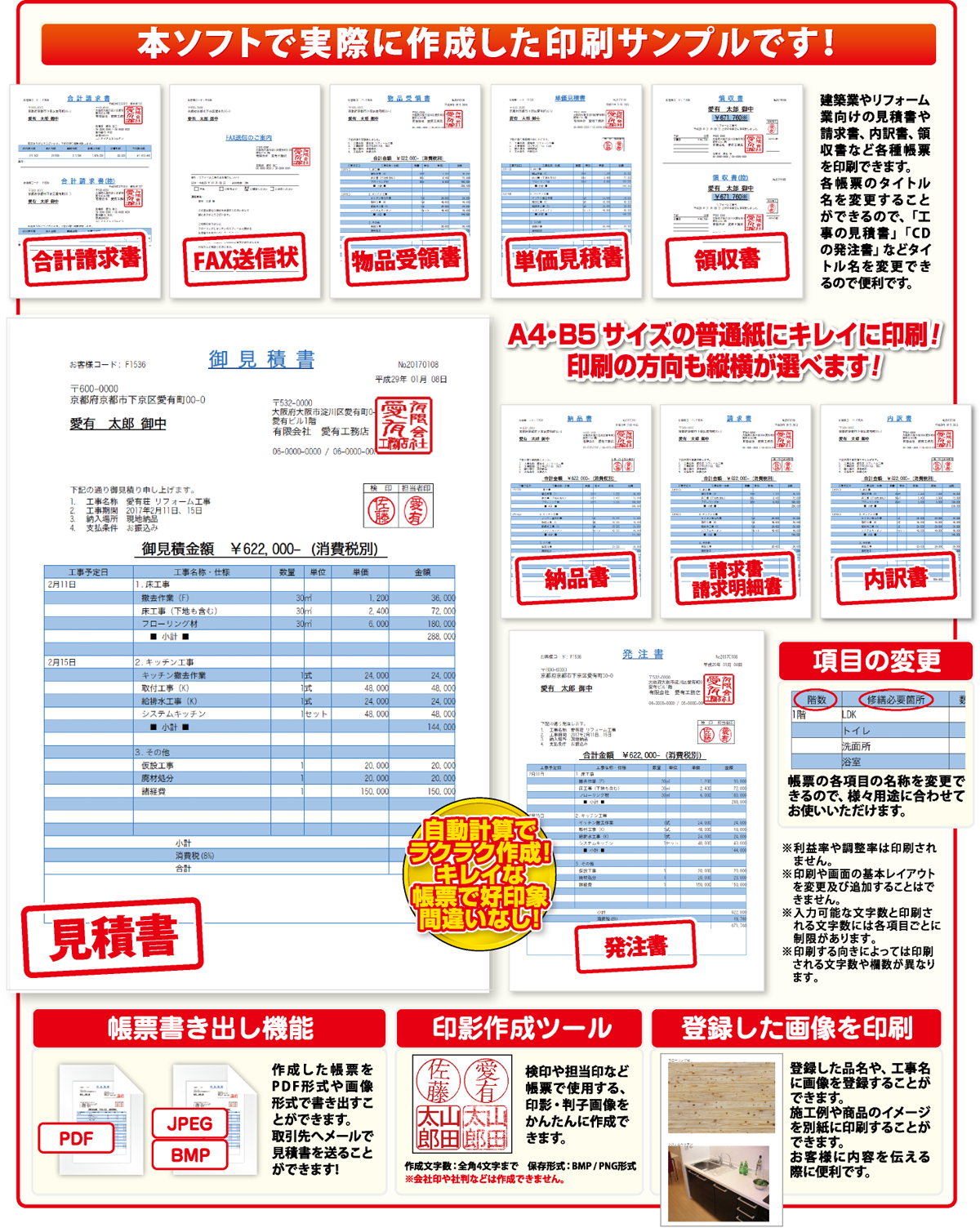 『工事見積印刷3』は建築業やリフォーム業向けの見積書や請求書、