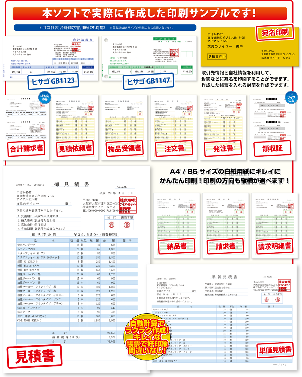 「見積・納品・請求書6 3ライセンス版」は見積書・納品書・請求書などの