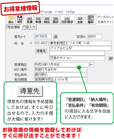 封筒に宛名印刷してすぐに見積書などを送付することができます。